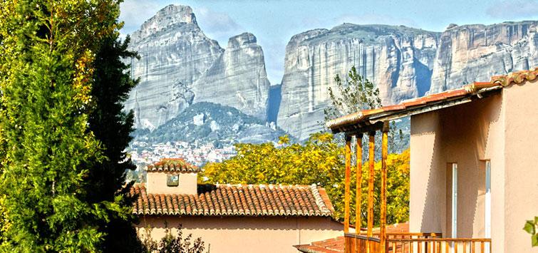 Amalia Hotel is a beautiful setting just minutes away from the town of Kalambaka. The hotel is embedded on 14 acres of greenery and has been built with traditional materials to match its surroundings. This beautiful scenery is completed with running waters, extensive gardens, a large swimming pool and views to the Meteora rocks. The moment you enter the hotel’s magnificent lobby, a warm feeling embraces you, with the wooden and iron details, the handmade kilims, and the fire places of the café and the piano bar.