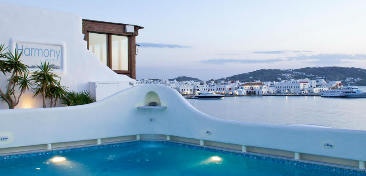 Harmony Boutique Hotel, the first Luxury Boutique Hotel in Mykonos by the sea, on the old port of Mykonos. Our hotel is a typical example of local folk architecture - whitewashed cube-like houses, pure lines and rambling alleys - which has inspired dozens of architects around the world.
